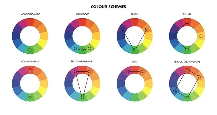 چرخ رنگ تمام رنگهای موجود در طیف را نشان میدهد. در این قالب، میتوانیم ببینیم موقعیت هر رنگ در چرخ، رابطهی آن با سایر رنگها را تعیین میکند.